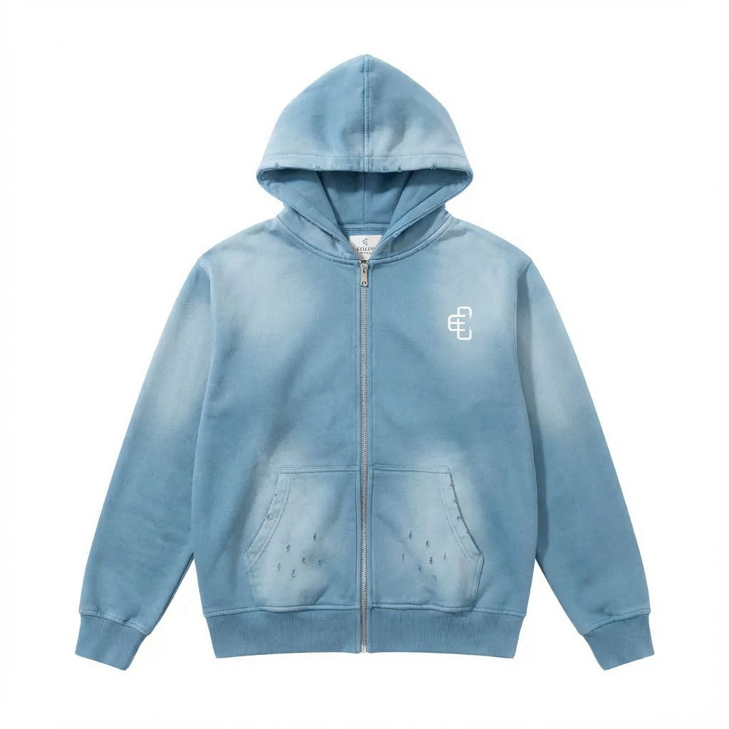 COPPED Zip-Up Hoodie Light Blue