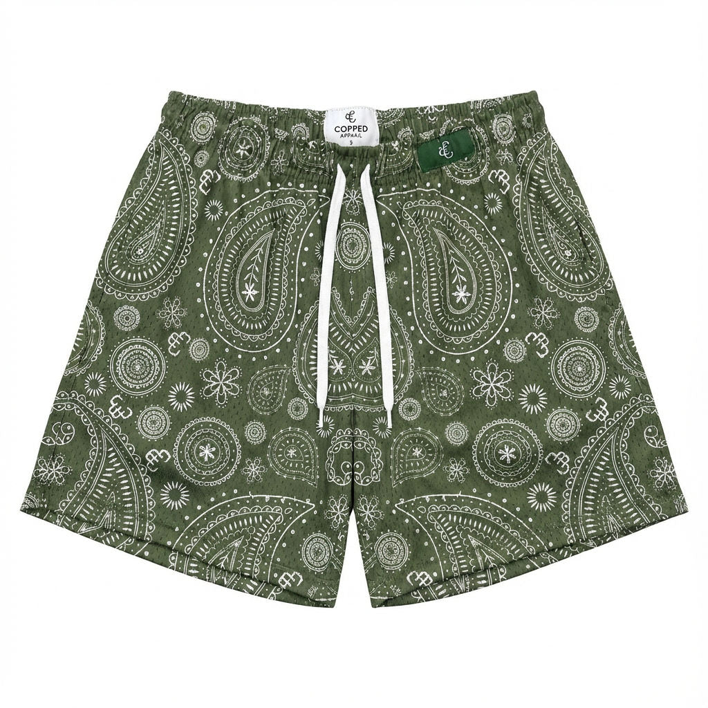 Copped Shorts Paisley Olive